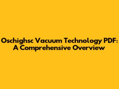 Oschighsc Vacuum Technology PDF: A Comprehensive Overview