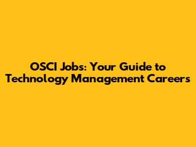OSCI Jobs: Your Guide To Technology Management Careers