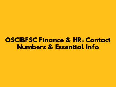 OSCIBFSC Finance & HR: Contact Numbers & Essential Info