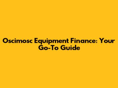 Oscimosc Equipment Finance: Your Go-To Guide