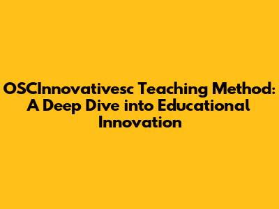 OSCInnovativesc: Revolutionizing Education With Innovative Methods
