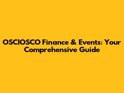 OSCIOSCO Finance & Events: Your Comprehensive Guide