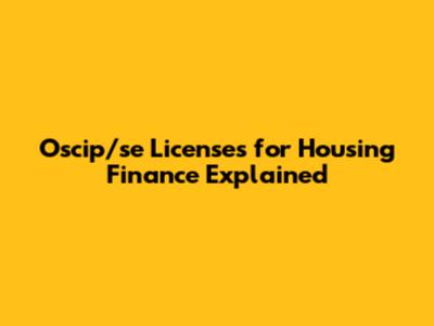 Oscip/se Licenses For Housing Finance Explained