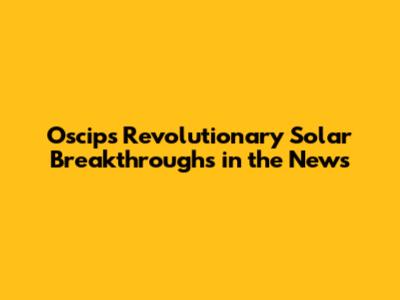 Oscips' Revolutionary Solar Breakthroughs In The News