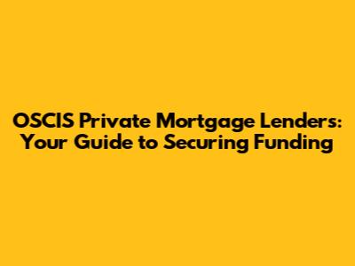 OSCIS Private Mortgage Lenders: Your Guide To Securing Funding