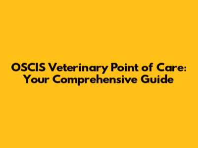 OSCIS Veterinary Point Of Care: Your Comprehensive Guide