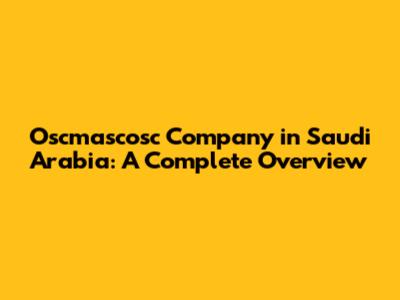 Oscmascosc Company In Saudi Arabia: A Complete Overview