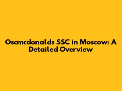 Oscmcdonald's SSC In Moscow: A Detailed Overview