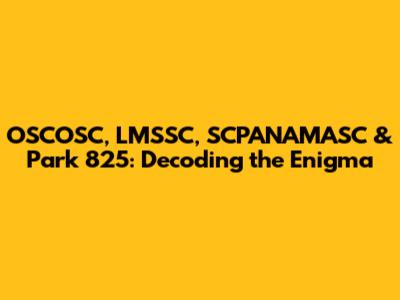 OSCOSC, LMSSC, SCPANAMASC & Park 825: Decoding The Enigma