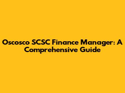 Oscosco SCSC Finance Manager: A Comprehensive Guide