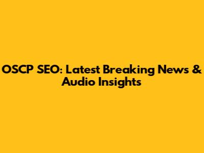 OSCP SEO: Latest Breaking News & Audio Insights