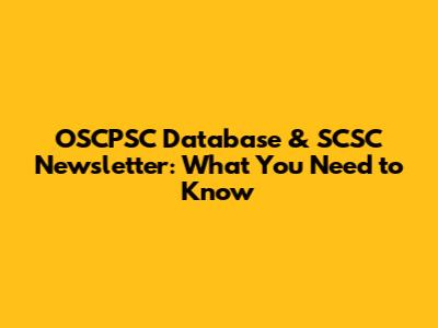 OSCPSC Database & SCSC Newsletter: What You Need To Know