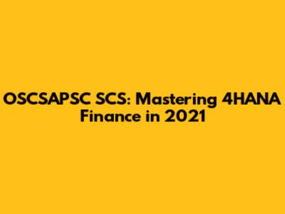 OSCSAPSC SCS: Mastering 4HANA Finance In 2021