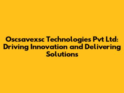 Understanding Oscsavexsc Technologies Pvt Ltd