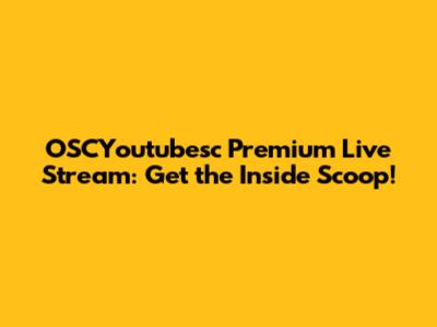 OSCYoutubesc Premium Live Stream: Get The Inside Scoop!