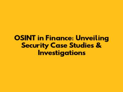 OSINT In Finance: Security Case Studies & Investigations