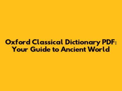 Oxford Classical Dictionary PDF: Your Guide To Ancient World