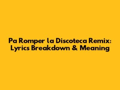 Pa Romper La Discoteca Remix: Lyrics Breakdown & Meaning