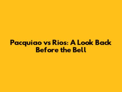 Pacquiao Vs Rios: A Look Back Before The Bell
