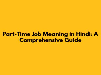 Part-Time Job Meaning In Hindi: A Comprehensive Guide