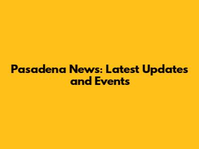 Pasadena News: Latest Updates And Events