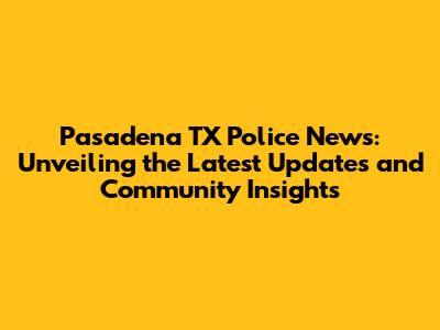Pasadena TX Police News: Updates & Community Insights