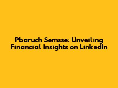 Hey everyone, let's dive into the world of finance and explore the LinkedIn presence of Pbaruch Semsse, a name you might have stumbled upon if you're deep into the financial sphere. This article is your go-to guide to understanding his background, expertise, and what makes his LinkedIn profile a valuable resource. We'll be breaking down his career trajectory, the kind of content he shares, and why you should consider connecting with him. Get ready to level up your financial knowledge, guys!