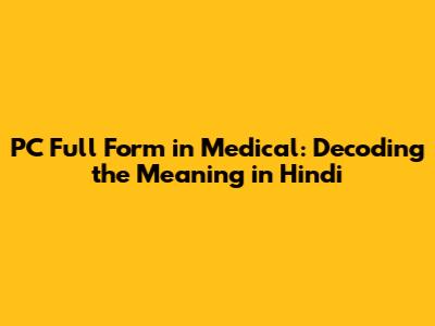 PC Full Form in Medical: Hindi Translation and Significance