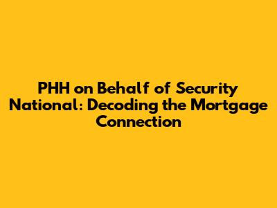 Hey guys! Ever stumbled upon PHH Mortgage acting on behalf of Security National and wondered what’s going on? Well, you're not alone! It can seem a bit confusing at first, but let's break it down in simple terms. This article will clarify the relationship, what it means for you, and how it might affect your mortgage. So, buckle up, and let’s dive into the world of mortgage servicing!