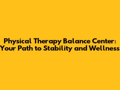 Physical Therapy Balance Center: Restoring Equilibrium And Stability