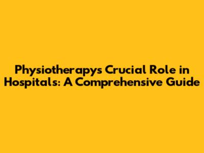 Physiotherapy's Crucial Role In Hospitals: A Comprehensive Guide