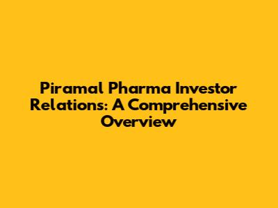 Piramal Pharma Investor Relations: A Comprehensive Overview