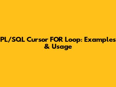 PL/SQL Cursor FOR Loop: Examples & Usage