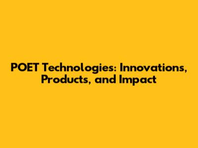 POET Technologies: Innovations, Products, And Impact