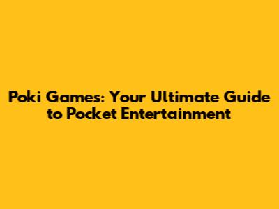 Poki Games: Your Ultimate Guide To Pocket Entertainment