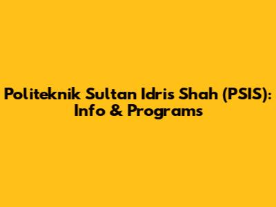 Let's dive into everything you need to know about Politeknik Sultan Idris Shah (PSIS)! If you're considering furthering your studies in a dynamic and practical environment, PSIS might just be the perfect place for you. This comprehensive guide will walk you through the various aspects of PSIS, from its background and academic programs to its facilities and student life. Get ready to explore what makes PSIS a unique and valuable institution for higher learning.