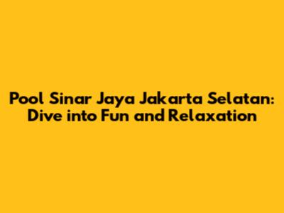Pool Sinar Jaya Jakarta Selatan: Your Ultimate Guide