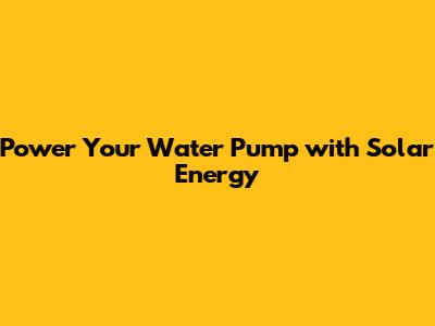 Power Your Water Pump With Solar Energy