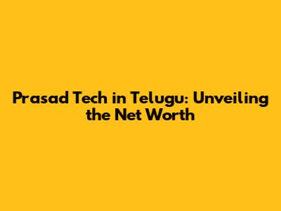 Prasad Tech In Telugu: Unveiling The Net Worth