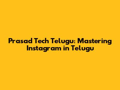 Tips for Your Instagram Success: Learn from Prasad Tech Telugu