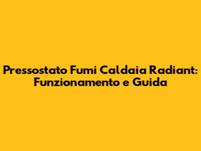 Pressostato Fumi Caldaia Radiant: Funzionamento E Guida