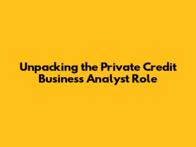 Unpacking the Private Credit Business Analyst Role