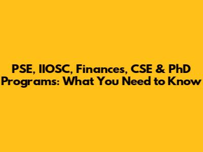 PSE, IIOSC, Finances, CSE & PhD Programs: What You Need To Know