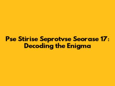 Pse Stirise Seprotvse Seorase 17: Decoding The Enigma