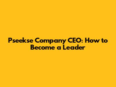 Pseekse Company CEO: How To Become A Leader