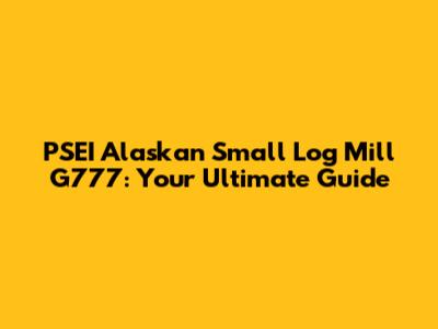 PSEI Alaskan Small Log Mill G777: Your Guide