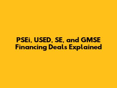 Let's dive into the world of PSEi, USED, SE, and GMSE financing deals! Understanding these terms and how they interrelate can be super beneficial, especially if you're involved in the stock market, dealing with pre-owned equipment, or managing small to medium-sized enterprises. Guys, financing can seem daunting, but breaking it down piece by piece makes it much more manageable. So, let's get started!