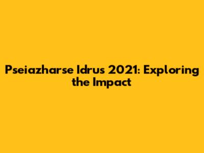 Pseiazharse Idrus 2021: A Comprehensive Overview