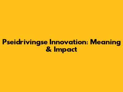 Pseidrivingse Innovation: Meaning & Impact