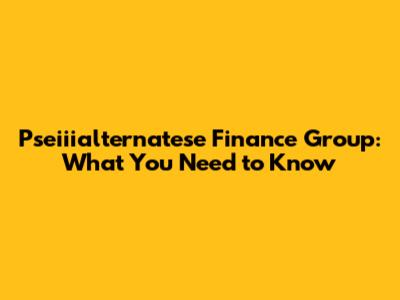 Pseiiialternatese Finance Group: What You Need To Know
